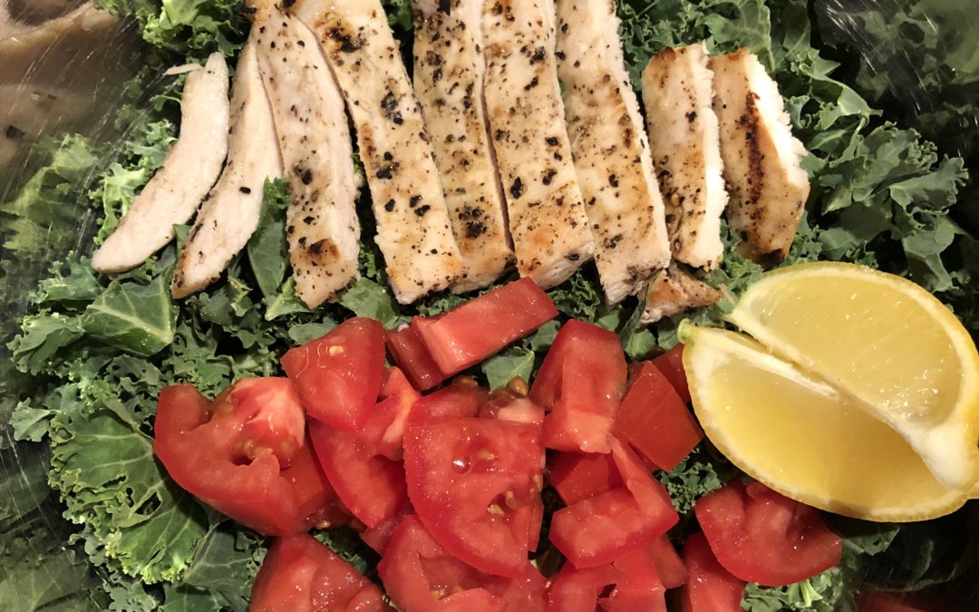 - In a large bowl combine kale, lemon juice, olive oil, salt and pepper (if desired).